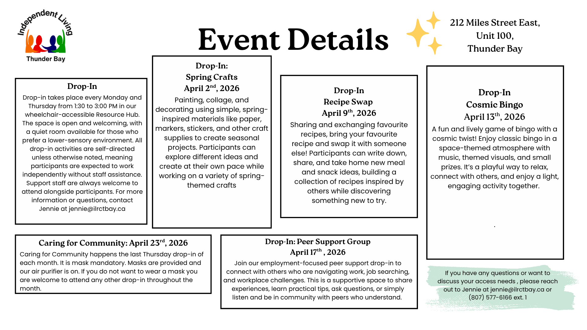 Join us for Drop-In at our Community Resource Hub every Monday and Thursday from 1:30 – 3:00 PM.